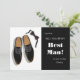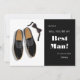 Uma maneira moderna de convidar os rapazes para o seu cortejo. Perfeito para o padrinho, os padrinhos e mais. (<a href='http://www.freepik.com/free-vector/man-shoes-and-bow-tie_1053548.htm'>Desenhado por Freepik</a>). <br/><br/>O cartão é fácil de personalizar com o seu texto, fonte, cor da fonte e escolha de seis tipos de papel.<br/><br/>Não é exatamente o que você está procurando? Todos os nossos produtos podem ser personalizados para atender às suas necessidades sem custo adicional.<br/><br/>Basta entrar em contato conosco em askcottonlamb@gmail.com<br/><br/>Produtos coordenados disponíveis: