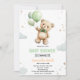 Convite Green balloon bear baby shower invitation