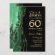Verde esmeralda, preto e ouro agitam a surpresa do 60º convite de aniversário. Elegante design moderno com cor aquática verde agate marble geode background, faux glitter gold e typografia script font. Trendy convida o cartão perfeito para uma comemoração de dia das mulheres na moda. Impressos convites Zazzle ou modelo de impressão digital instantânea para download.