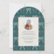 This preppy and coquette graduation party invitation features a green graduation cap on a cream background with light pink stripes. The reverse side features your photo and a text on a dark green background with a green bow pattern. Personalize it for your needs. You can find matching products at my store.
