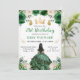 A Elegante cor d'água Black Haired princesa em salão verde escuro design com flores verdes e brancas, borboletas e confete dourado.
