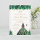 Convite Green Floral Brunette Hair Princess Birthday Party