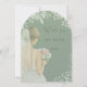 Beautiful watercolor wedding invitation featuring a bride with bouquet and soft greenery on a sage green background. Perfect for rustic, garden, and elegant weddings. Instant download printable template.