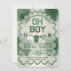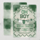 Kick off the celebration in true game day style with this green football field “Oh Boy” baby shower invitation. Featuring classic varsity typography, a sporty turf-inspired background, and adorable football-themed baby details, this design is perfect for welcoming your little MVP.