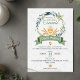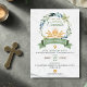 This holy communion design is a religious invitation for a first communion celebration. Perfect as a catholic communion invitation for a first holy communion, featuring green leaves and soft greenery.