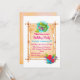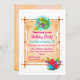 Um convite de festa de aniversário com um tema de luau tropical. Projetado com uma bela ilustração de um lagarto tropical verde cercado por folhas e flores exóticas. Um quadro de estilo bambu guarda todas as informações da sua festa.
