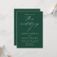 Convite de casamento minimalista e moderno, com detalhes de seu casamento em letras brancas simples com "o casamento de" em um roteiro elegante de caligrafia. O fundo verde escuro pode ser mudado para uma cor de sua escolha. Projetado para coordenar com a nossa coleção de casamento do Modern Elegance.
