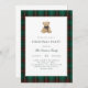 Green plaid patterned Christmas card with a cute teddy bear illustration.