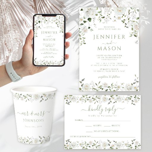 Convite Green White Flowers Eucalyptus Rose Peony Wedding