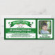 Convite Green & White Photo Baseball Game Ticket Birthday