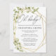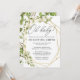 Convites de natação geométrica de bebês, super fofos e modernos. Esses convites apresentam folhas verdes pintadas com cor d'água com acentos de ouro. Perfeito para um chá de fraldas elegante.