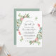 Este vinho verde de Natal e vinho de morango vermelho e ver convite é perfeito para um encontro de dezembro com o bebê. O design de inverno apresenta cor verde-d'água macia eucalipto e botânicos modernos, com borras de groselhas vermelhas clássicas.