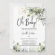 Parabéns para a nova mãe e pai que você está tendo um novo membro da família! Este Convite para Chás de fraldas apresenta um eucalipto verde e uma bela escrita tipográfica de escrita em caligrafia de "Oh Baby!" e bloqueia fontes sans serif juntamente com uma fotografia da futura mãe/pai/pais e um código QR para direcionar a sua família e amigos para o registro do seu bebê. Este convite é fácil de personalizar e será excelente de convidá-los para celebrar seu novo pacote de alegria.