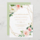 Este convite geométrico de 50º aniversário de casamento é perfeito para um simples aniversário de casamento. A design apresenta rosas brancos, cor-de-rosa e pincéis pintados à mão e um toque de verde, adoráveis quadros geométricos de ouro, inspiradora beleza artística.