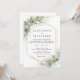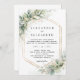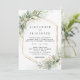 Este elegante CONVITE PARA O CASAMENTO apresenta uma aquarela pintada à mão, folhas de Eucalyptus, ouro e belo verde.
