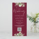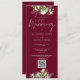 Um convite para casamento floral verde com tipografia elegante do roteiro de caligrafia e o seu website de casamento Código QR num fundo vermelho de burgundy. Projetado por Thisnotme©