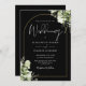 Este elegante convite de casamento botânico de arco dourado floral preto e branco floral pode ser personalizado com suas informações em tipografia quic com seus detalhes no website do casamento e seu código QR no verso. Projetado por Thisnotme©