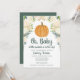 Este convite exclusivo para chás de fraldas de outono neutro do ponto de vista do gênero apresenta flores brancas de cor d'água, verde e abóbora de laranja.