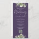 Um convite de casamento floral verde com tipografia elegante de escrita de caligrafia e o seu website de casamento Código QR em fundo roxo. Projetado por Thisnotme©
