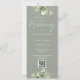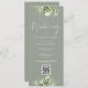 Um convite de casamento floral verde com tipografia elegante de escrita de caligrafia e o seu website de casamento Código QR num fundo verde de sábio. Projetado por Thisnotme©