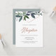 Este convite de recepção de casamento moderno e elegante apresenta uma forma geométrica em rose gold falso, rodeada por belos ramos de folhagem, com uma tipografia elegante em rose gold falso.