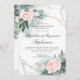 Aquarela greenery, moldura geométrica dourada e peônias rosa beijo de noiva convites de festa de aniversário de casamento