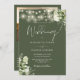 Esta elegante corda floral verde ilumina o convite para o casamento verde-azeitona pode ser personalizado com suas informações em tipografia gráfica com sua foto especial, detalhes do site de casamento e seu código QR no verso. Projetado por Thisnotme©