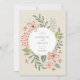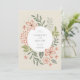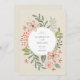O design de cartão moderno apresenta coroa de flores e folhosas. Personalize com seus nomes, data do casamento e local usando os campos fornecidos.