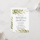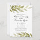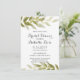 O convite é muito bonito, com folhas verdes em fundo branco, tanto na frente como no verso. Perfeito para o casamento de primavera, ao ar livre ou verde.