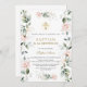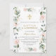 Design de Cartão de Aniversário do Batismo Flor Verde Única. Apresenta delicadas flores cor-de-água, cor-de-rosa, verde, folhas douradas, cruz dourada falsa, fontes lindas, todas sobre fundo branco. Use a ferramenta Personalizar para adicionar suas informações. Para obter itens correspondentes, visite minha Coleção de Festas Batismo e primeiro aniversario.