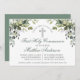 O Primeiro Convite à Comunidade Elegante Moderno inclui folhas de cor aquosa de eucalipto e outras lindas folhagens botânicas verdes. Sage Green Back. Silver Cross.