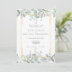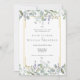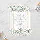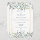 Greenery watercolor floral sage lilac convite de casamento tudo em um com bonito sábio e folhas lilás que caem sobre uma elegante estrutura de ouro que envolve seus detalhes de casamento em texto elegante. O inverso tem o seu site de casamento e os detalhes do RSVP, e o código QR. Projetado por Thisnotme©