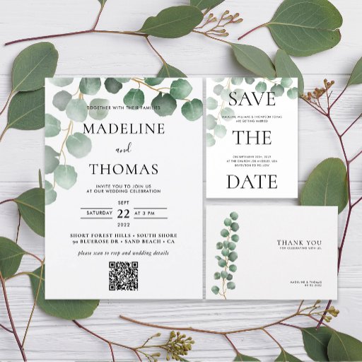 Convite Greenery Watercolor Deixa Foto Código Qr Casamento
