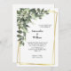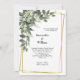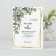 Um belo quadro de ouro com verde e flores brancas neste convite para o casamento. Personalize todos os campos para torná-lo seu.