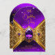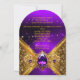 Convite Grelha de Ouro Roxo de Aniversário Dourado Elegant