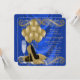 Convite de aniversário azul real e ouro glamouroso da mulher, com belos calçados de salto alto, brilho dourado, champanhe e pérolas num fundo azul-real luxuoso. Este elegante convite de aniversário azul e dourado é facilmente personalizado para o seu evento simplesmente adicionando os seus detalhes no estilo de letra e cor, texto e layout da sua escolha. Você também pode mover ou excluir o champanhe e os balões. Esta é uma design impressa sem joias reais, pérolas, brilho, etc.