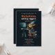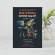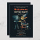 Um convite divertido, mas elegante, para a festa do Dia das Bruxas com um tema noturno de cinema, com um gremlin operando um projetor de cinema, com um gato preto ao lado dele, em aquarela. Elegante, moderno, simples e divertido, vai agradar aos fãs das noites de cinema e da diversão de Halloween.