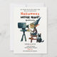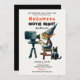 Um convite divertido, mas elegante, para a festa do Dia das Bruxas com um tema noturno de cinema, com um gremlin operando um projetor de cinema, com um gato preto ao lado dele, em aquarela. Elegante, moderno, simples e divertido, vai agradar aos fãs das noites de cinema e da diversão de Halloween.