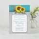 Madeira Rústica Teal, Ouro Girassol encantador e moderno Convite para Casamento, Perfeito para os casamentos deste ano