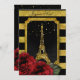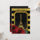 Rosa de Natal em Paris, Eiffel Tower, convite de festas Dourado Stripe para a sua personalização.