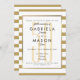 Com um clássico fundo listrado de ouro e branco, este elegante convite de 50 anos de casamento do ouro apresenta uma elegante borda de folha de ouro que enquadra seus detalhes de festas de 50 anos em tipografia chica sobre na moda 50. Projetado por Thisnotme©