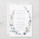 Convite de casamento com grinalda de flores silvestres azul empoeirado elegante.