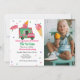 Convite de aniversário bonito e feminino de sorvete. O design apresenta um esquema de cor rosa de morango com um caminhão sorvete. Simples de usar modelo que pode ser personalizado para qualquer grupo etário.