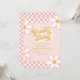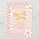 Groovy Baby Retro inspirou o convite para o Chá de fraldas com fontes do estilo 70 e margaridas e padrão do verificador.