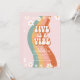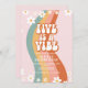 Retro inspirou Cinco é um convite de aniversário de 5 Vibe Groovy com estilo hippie arco-íris, margarida e fontes e cores boho.