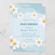 Convite Groovy Dusty Blue Retro Daisy Chá de fraldas Flora