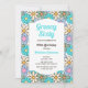 Padrão verde, azul, rosa e púrpura da flor da manivela verde, azul, rosa e púrpura, Convite Aniversário. Esta design divertida e vibrante é perfeita para qualquer um que queira adicionar um toque de talento retrorreflector ao seu dia especial. Com as suas cores ousadas e o padrão floral ranhoso, este convite é certamente para dar o tom a uma celebração memorável.