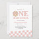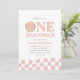 Celebrar as vossas raparigas de primeira festa de aniversário com o nosso convite de aniversário 'UM PINTINHO RAD', a cor-de-rosa. Este design apresenta um rosto feliz, fácil de amar, com óculos de sinais de paz e padrões empoeirados, cor-de-rosa e ondulados.
