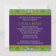 Linda arte oriental de Glamor inspirou o convite de Bat Mitzvah design colorida para as cores neon. Círculo de pontos Dourados e pérolas para incluir o nome, o nome do evento e a data na frente da placa. Design glamouroso moderno em cores brilhantes e brilhantes de verde brilhante, aqua, roxo escuro e ouro. A frente também apresenta uma estrela de David por trás do texto, misturada suavemente. (Você pode remover isso, se não for necessário - basta clicar na opção PERSONALIZAR para design com opções mais profundas) pois o design continua atrás com espaço para mais texto com trims correspondentes. Mas é claro que este design também se adequaria a qualquer tipo de ocasião e eventos especiais, incluindo chá de panela de ranhura, festa de mascarada, aniversário psicodélico ou apenas um encontro mágico com pessoas especiais.