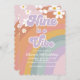 Groovy Nine é um convite de aniversário do Vibe Retro Rainbow 9º aniversário com margaridas.